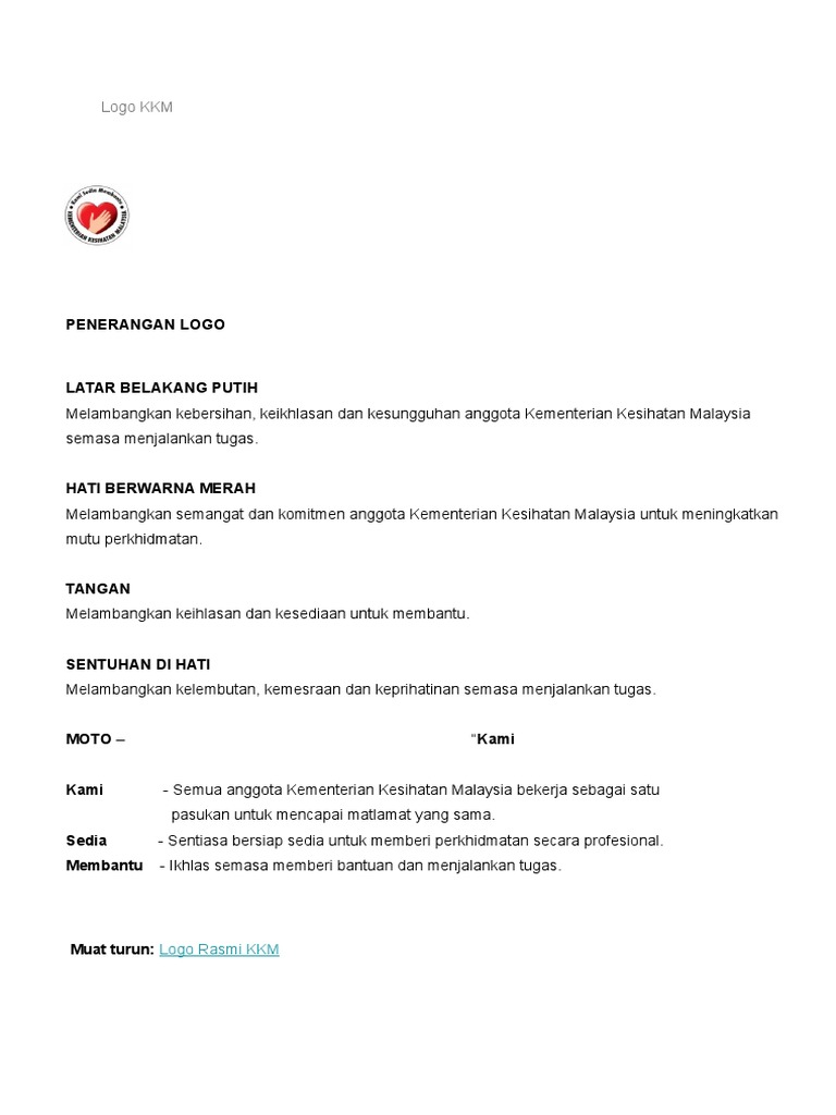 Pada masa yang sama ia membantu kementerian kesihatan malaysia kkm. Download kementerian-kesihatan-malaysiaai_zip kementerian-kesihatan-malaysiaai_zip Downloaded 10899 times 1 MB. Melambangkan semangat dan komitmen anggota Kementerian Kesihatan Malaysia untuk meningkatkan mutu perkhidmatan.